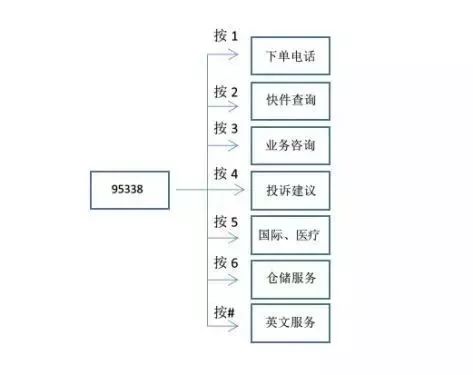 我們要寄快遞打企業(yè)電話的時候,會聽到以下語音:歡迎致電XXXX,我司推XX儲值卡,下單立享5%的折扣,下單電話請按1,快件查詢請按2,業(yè)務(wù)咨詢請按3,投訴建議請按4,國際快運,醫(yī)療器械請按5,倉儲服務(wù)請按6、英文服務(wù)請按#。