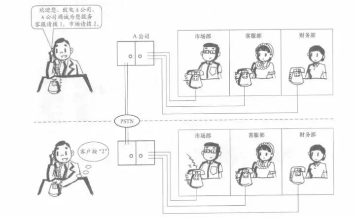交互式應(yīng)答,即自動提示音,企業(yè)的總機可以設(shè)置為自動語音提示,任何人打企業(yè)電話的人可以通過播按鍵,進入某個自動查詢的系統(tǒng),或?qū)崿F(xiàn)各種與數(shù)據(jù)信息相關(guān)的業(yè)務(wù)。